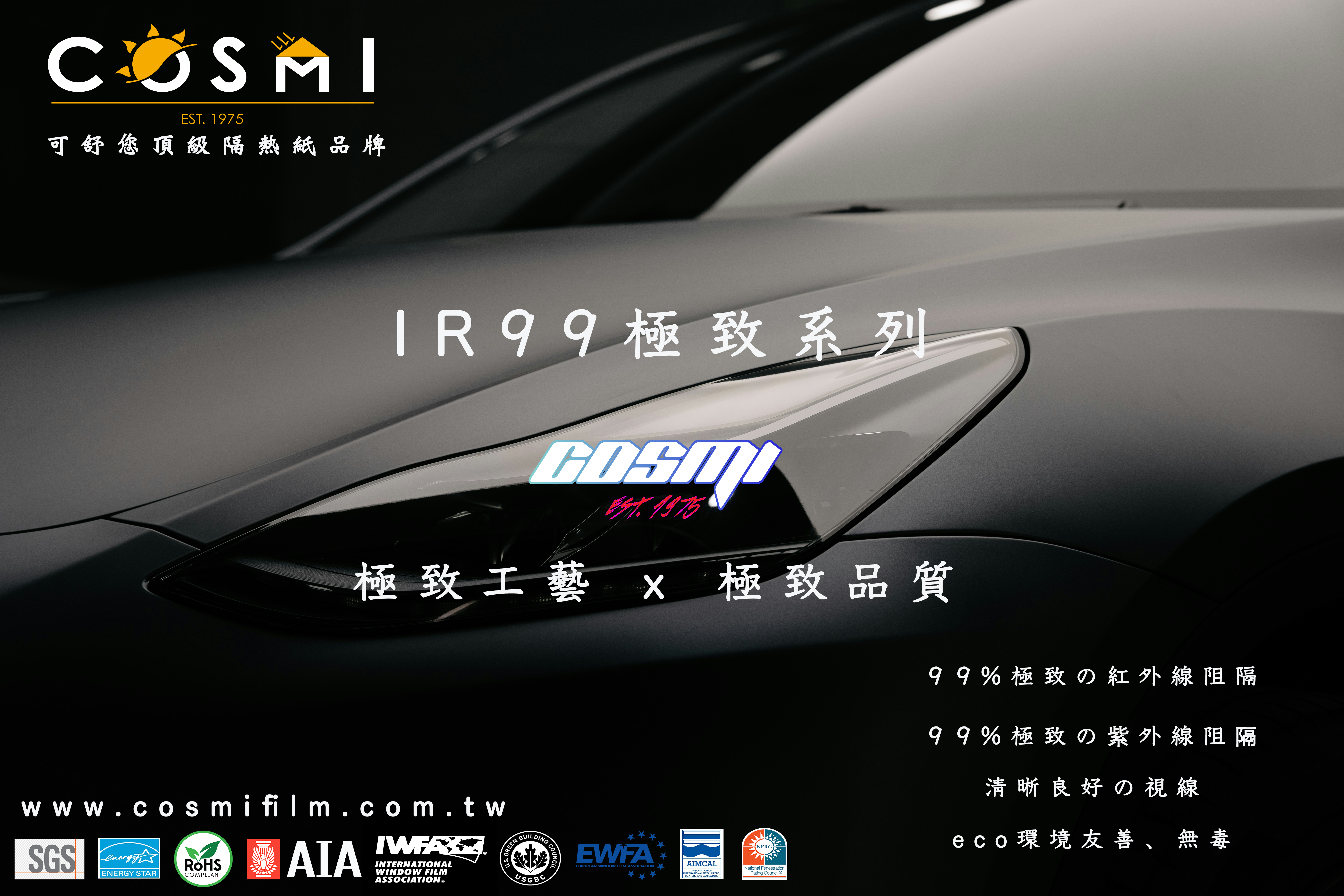COSMI可舒您等級最高極致系列隔熱紙將以嚴格品質管控、優異性能、合理價格與市場競爭力,均得到客戶極高的肯定及好評。